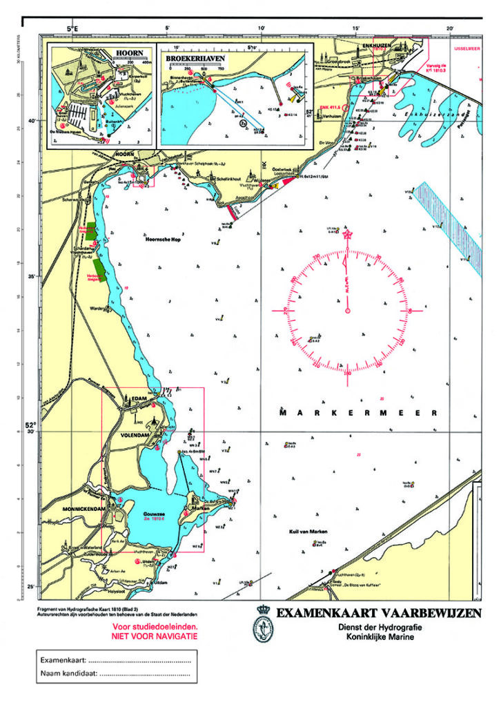 | Kaart 1630 (Examenversie) | Nee (krijg je van CBR) | Hierop zet je koersen en peilingen uit. |