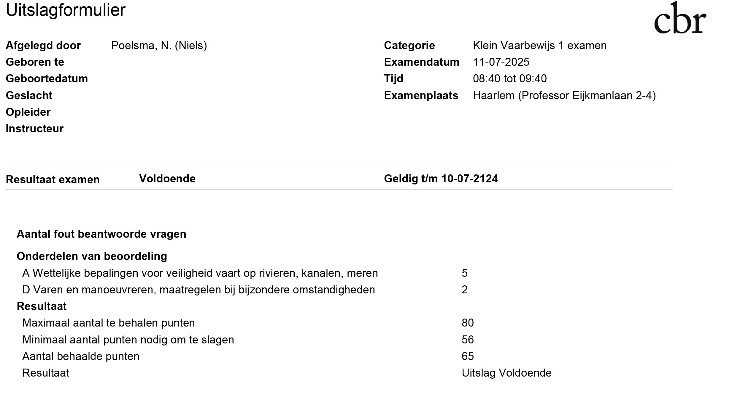 De tweede poging voor het vaarbewijs examen: Geslaagd